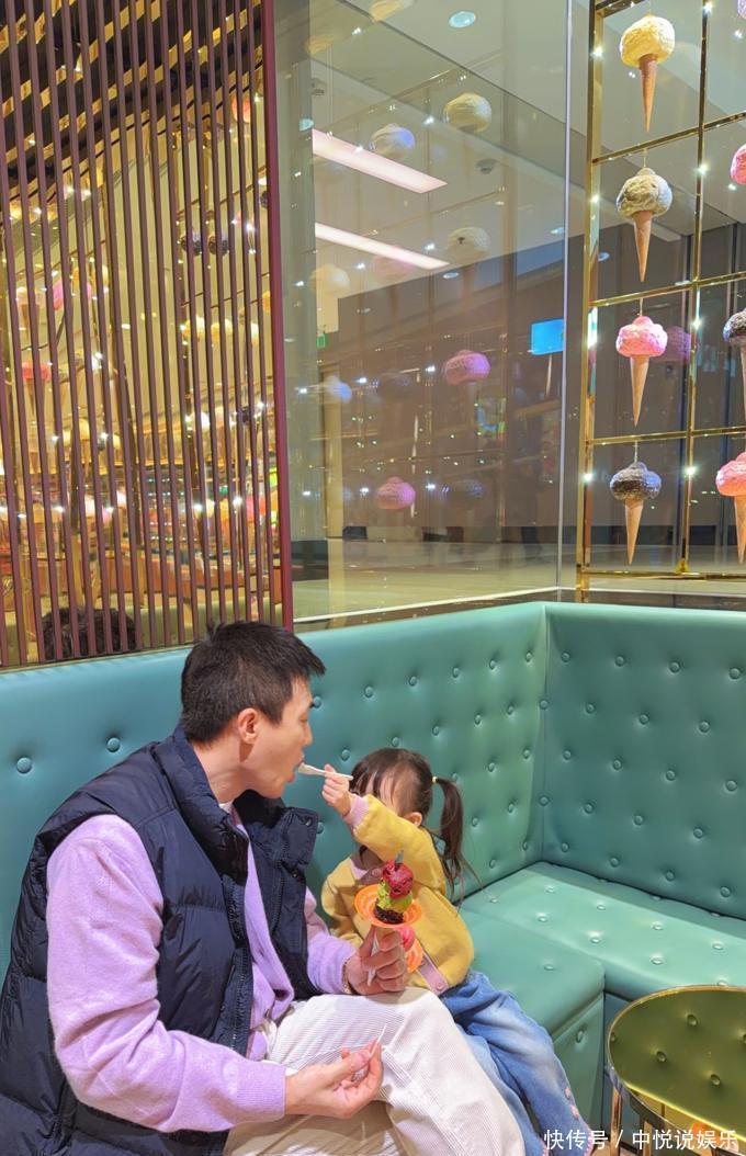 在那家甜品店的绿色皮质沙发区域,杜淳与小蛋饺之间的互动可以被形容为“典型的教科书风格的宠女”。在镜头中,我们可以看到小蛋饺拿着五颜六色的冰淇淋,站在脚尖上用勺子喂给他的父亲,而杜淳则低头张开嘴巴,他的眼中充满了深深的宠爱。